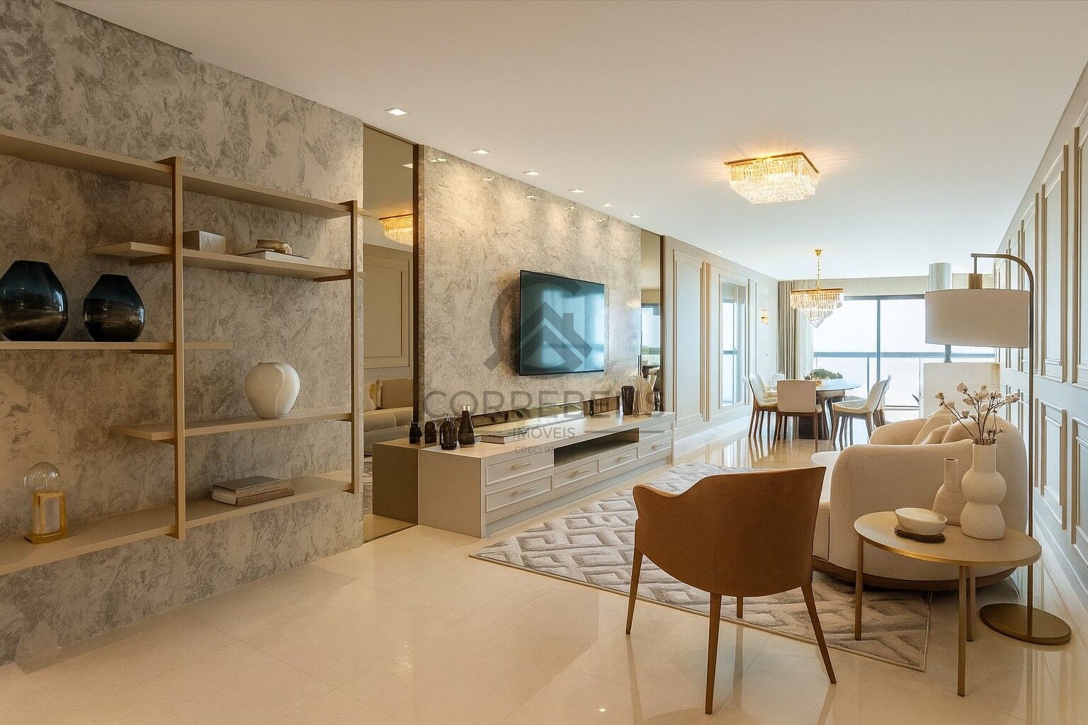 • Hall de entrada decorado e mobiliado em estilo neoclássico, climatizado e sonorizado;